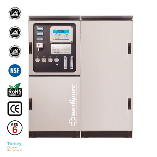 • Medipure XC-9750 Mobil Ultra Saf Su Cihazı; Mikro filtreleme, Karbon Filtreleme, Ozmotik demineralizasyon , Quadplex deiyonizasyon, High Boost ,Direct Flow, Auto Flushing, PLC AI ve 254 nm UV ışın gücü, Çift katmanlı saflaştırma Ultra filtreleme gibi opsiyonel özellikleri tek cihazda barındıran (ALL IN ONE) Dünya' nın ilk ve tek 6. nesil ultra saf su cihazıdır. Her türlü ortam şartında ve koşulda şebeke suyu değeri üzerinden %99,99 performans sağladığı, endüstri uygulamaları, medikal ve klinik uygulamalar ile üretim tesislerinde ispatlanmıştır.